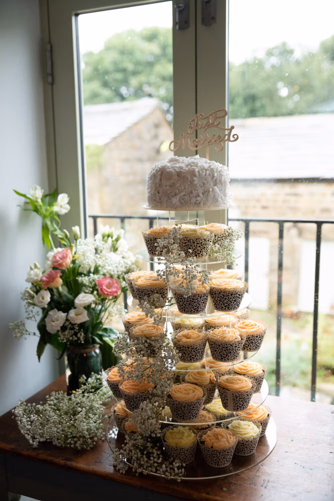 This rustic Yorkshire barn setting, tucked into the hills above the Wharfe Valley, created a calm and natural space for their vows and personal moments.