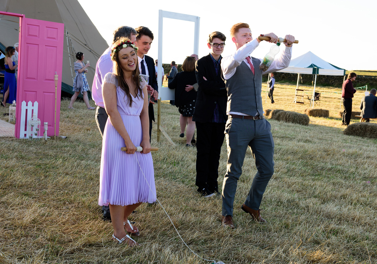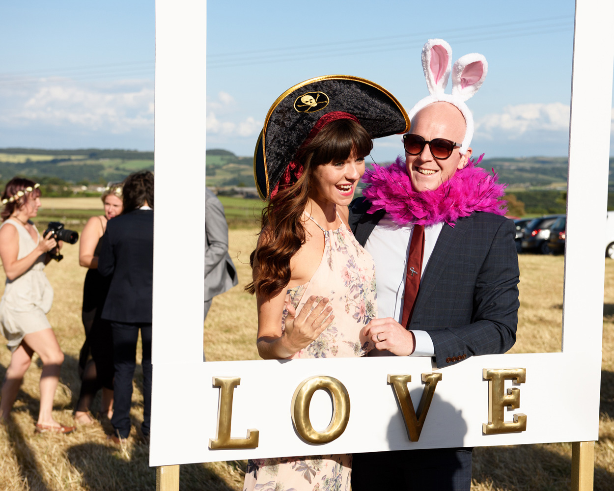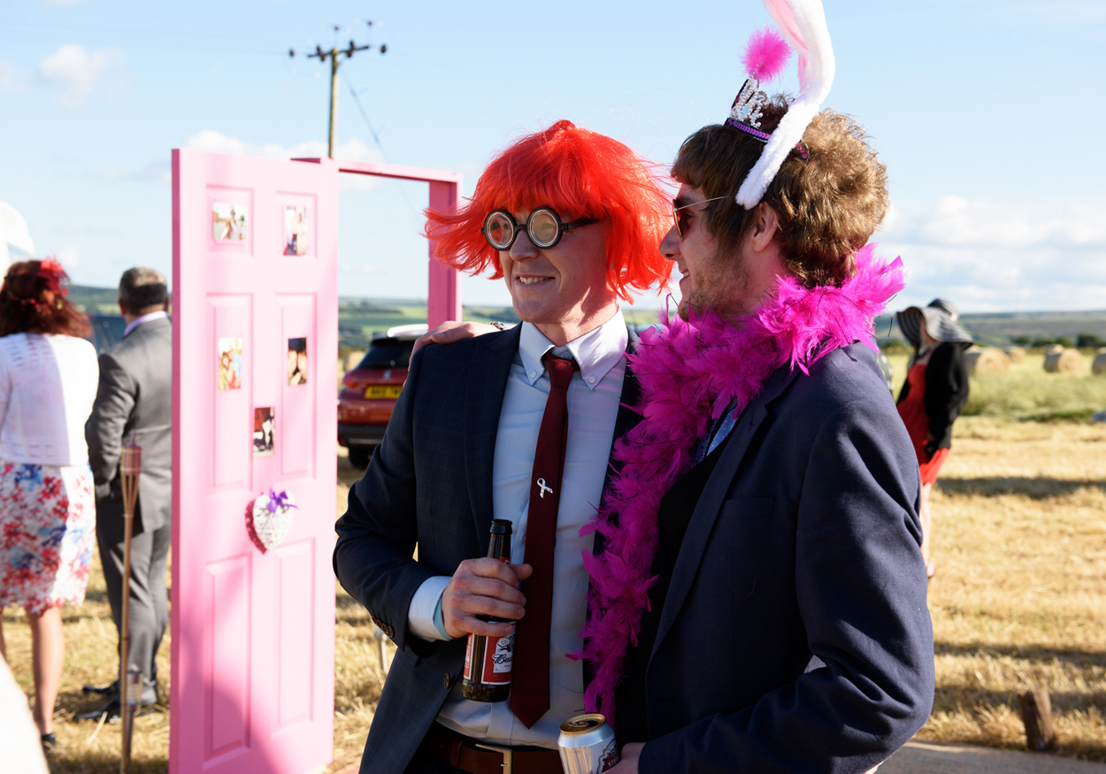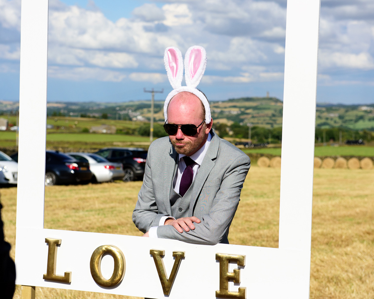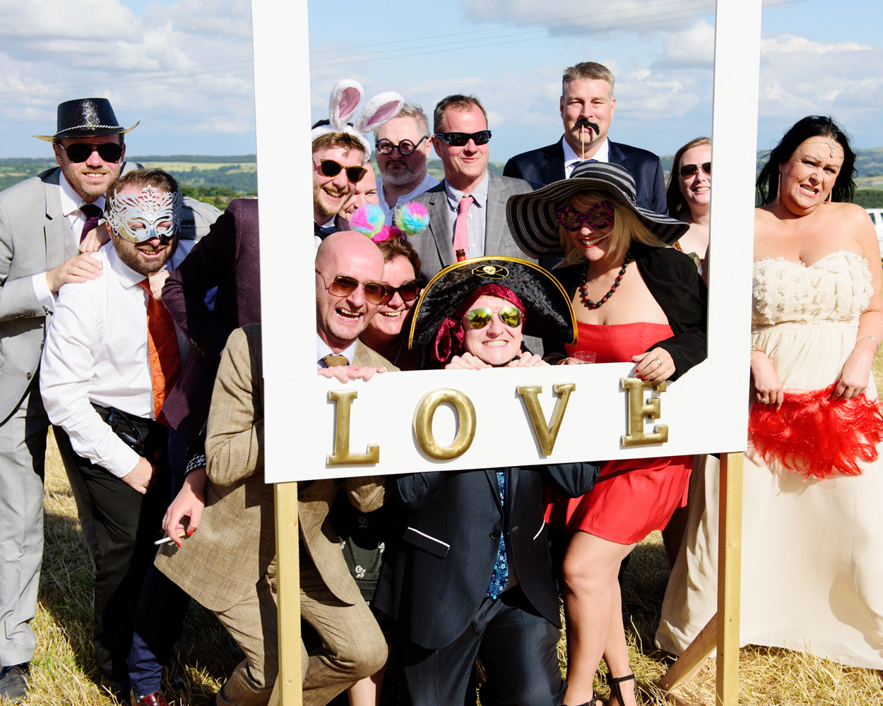 Outside Photo-booth fun at a Summer Wedding Story in Huddersfield. Photographed by a Yorkshire wedding photographer in Huddersfield - Tim Christian Jones,