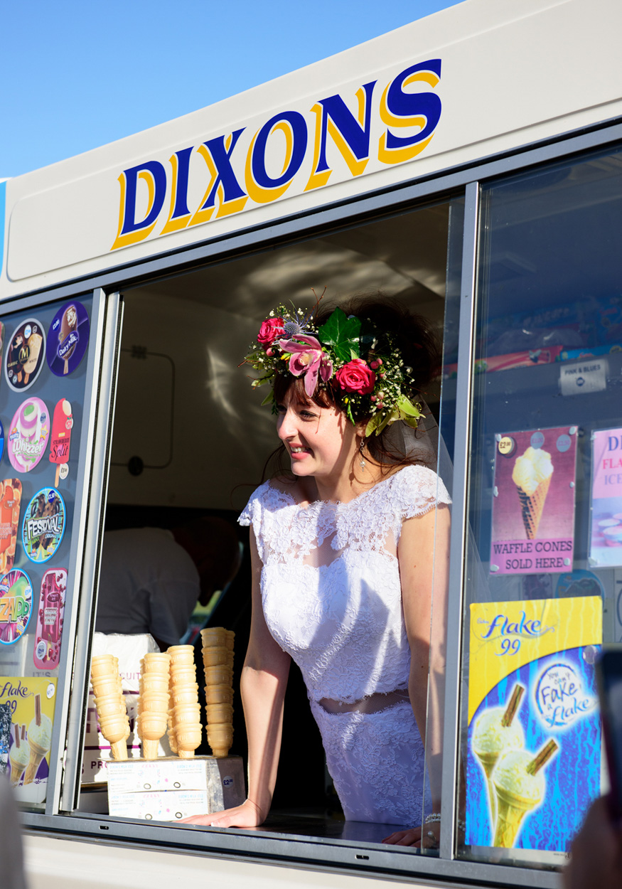 This Huddersfield wedding gallery below was a beautiful summer celebration beginning at the family home for preparation. Then onto St Peter’s in Armitage Bridge. Then back to the family home and sweeping fields where set up ready were Teepee Tends, lawn games and an outside photo booth. And what a wonderful idea both for some cool couple shots, an Ice Cream Van – 99 flakes and all! Fab idea for the guests I though. At another wedding the couple booked a stone pizza over van for the evening do – wow it was so nice!