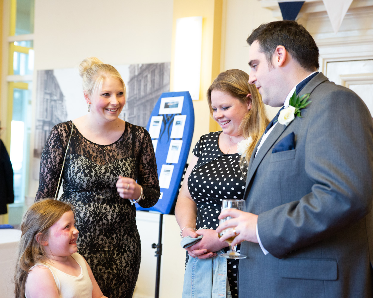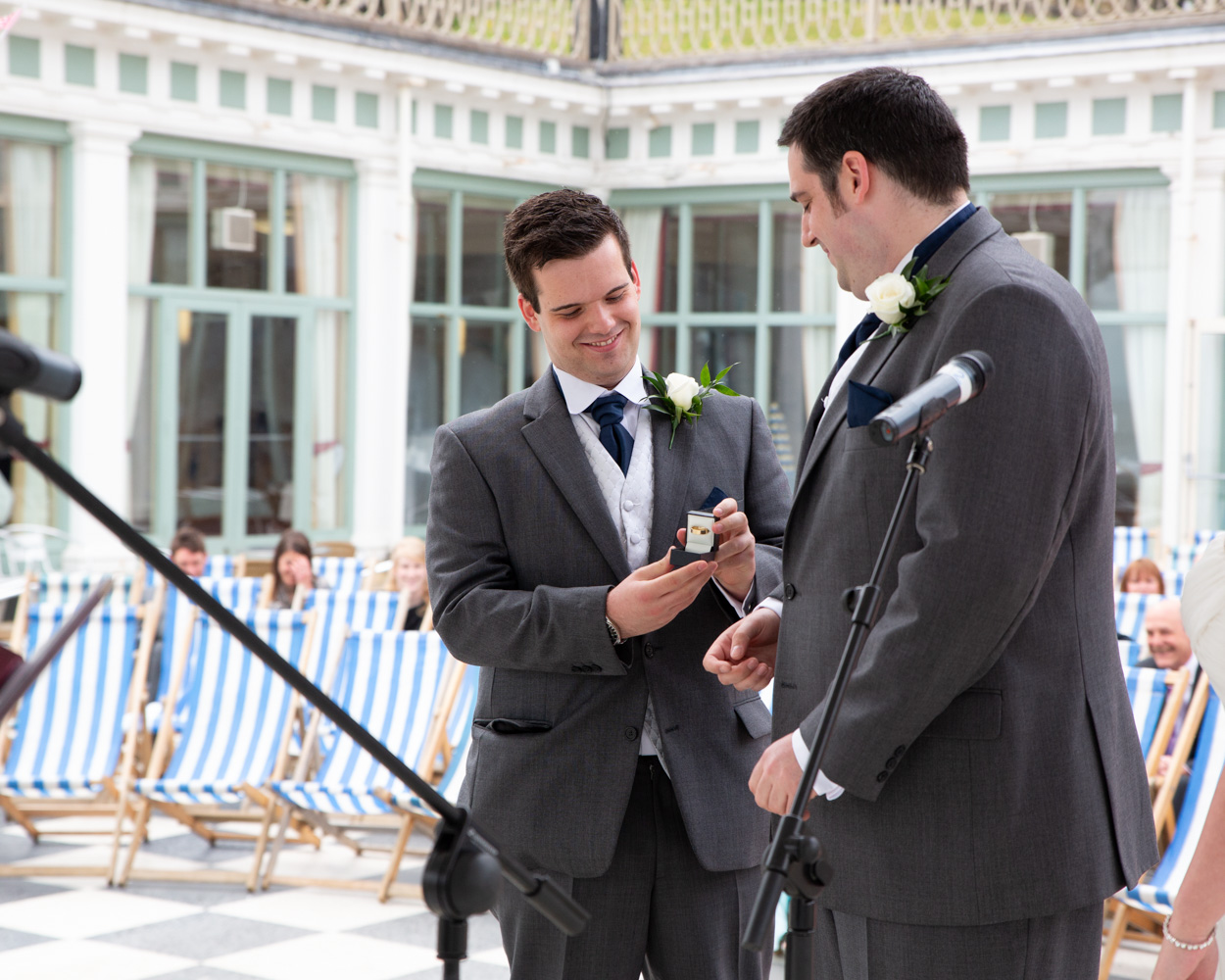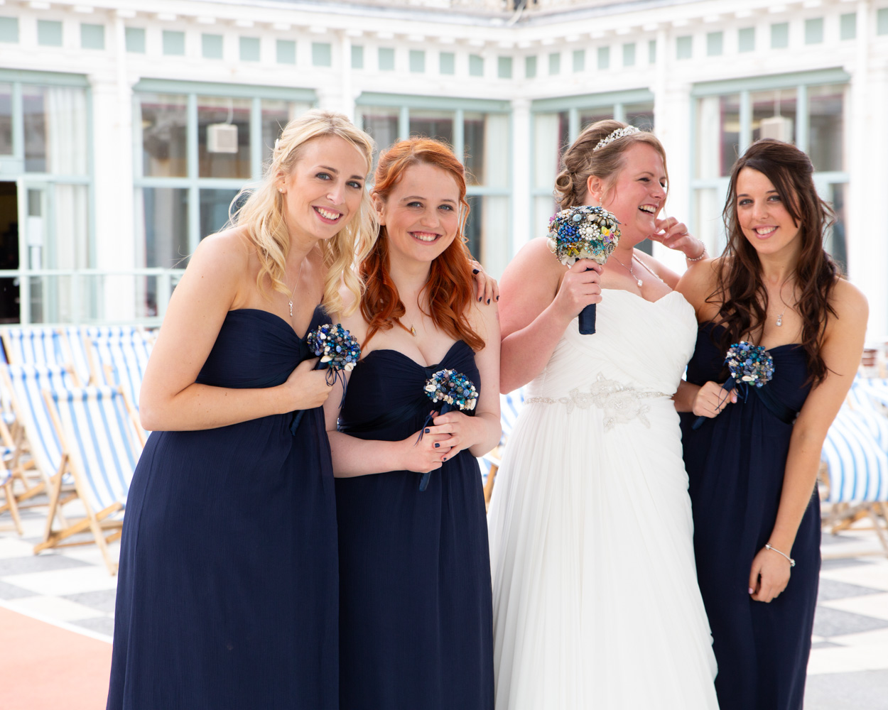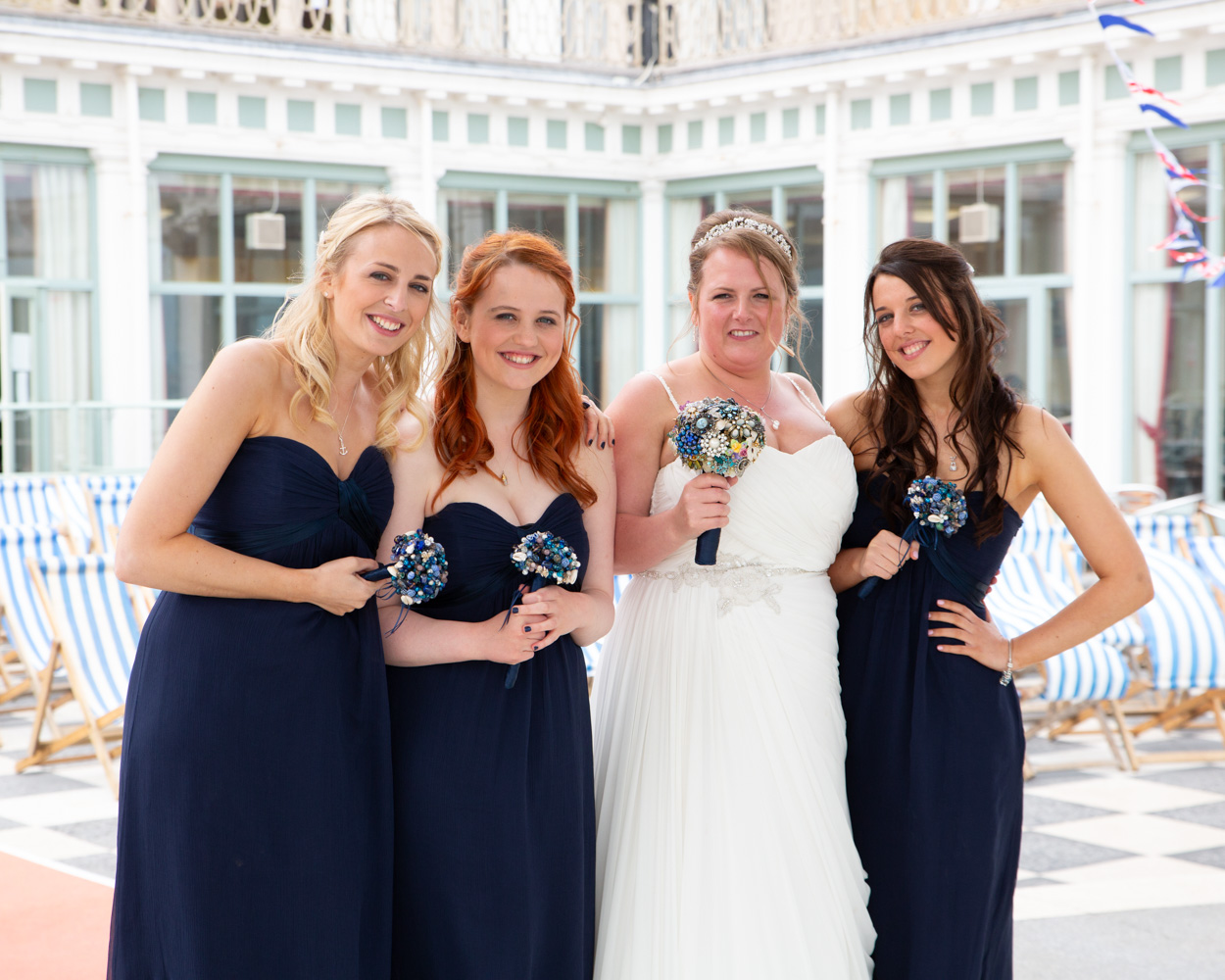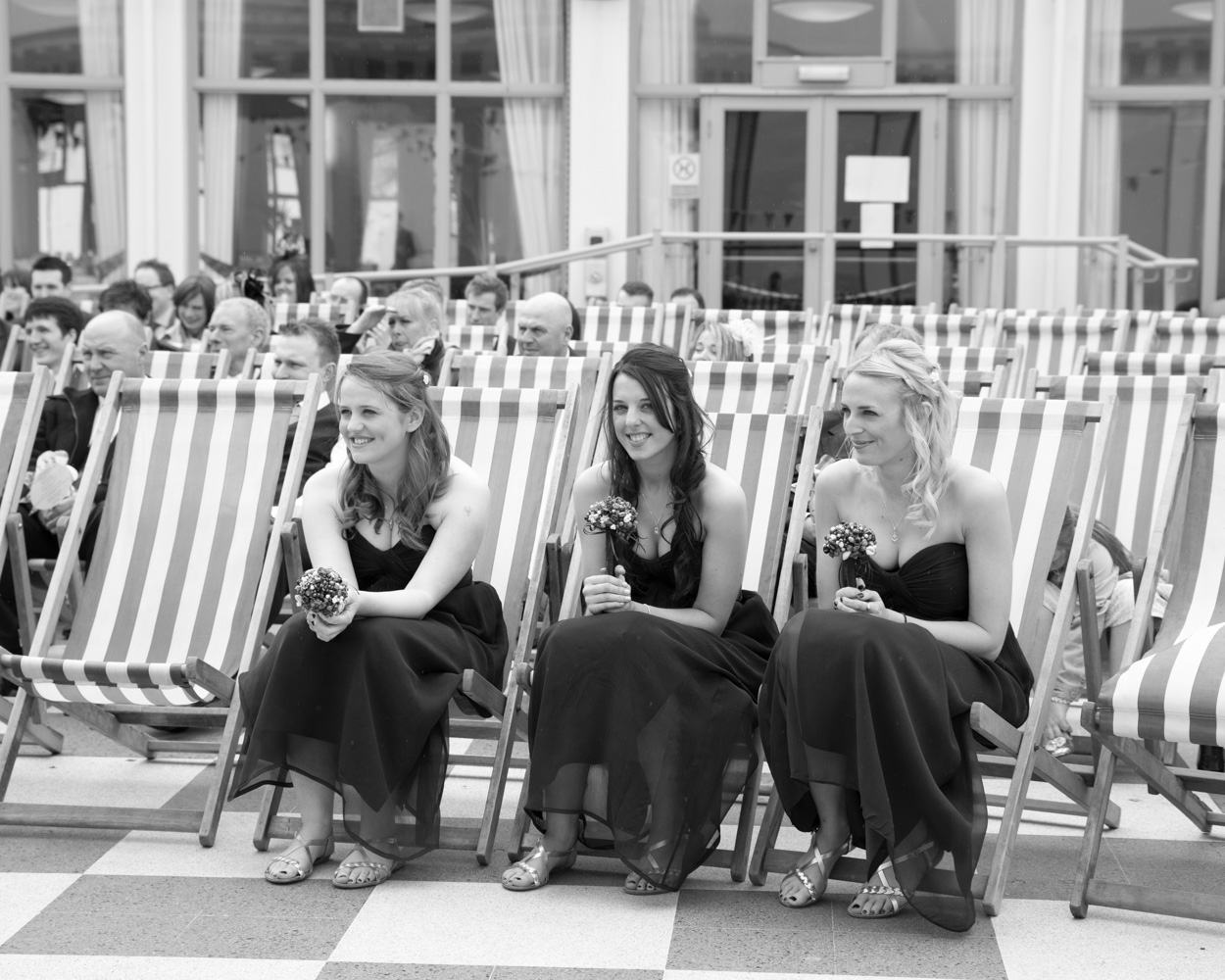 With the deckchairs and the Spa framing everything perfectly, the photos felt natural and unforced. Family gathered easily, laughter slipped in between frames, and the mood stayed playful — exactly right for a May wedding by the sea.
