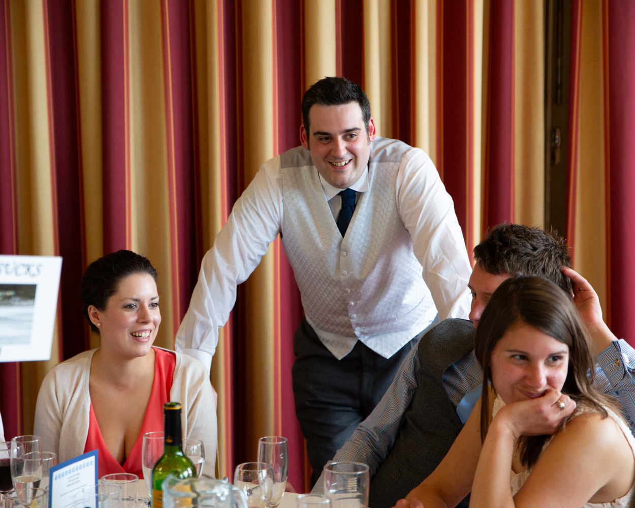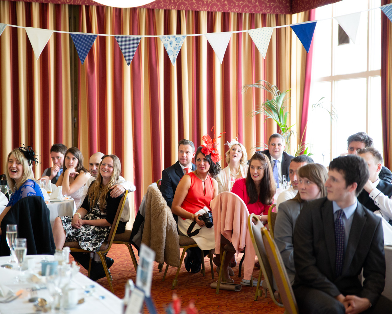 Lisa and Oliver entered to warm applause and smiling faces — the kind of welcome that instantly softens any nerves. Speeches came before the food, often a brave move, but here it worked perfectly. Laughter settled the room, emotions landed gently, and no one seemed to mind the wait.