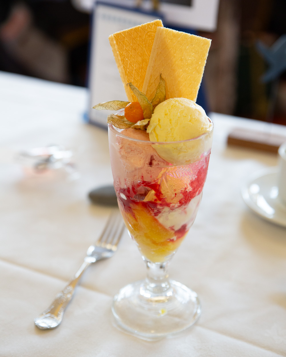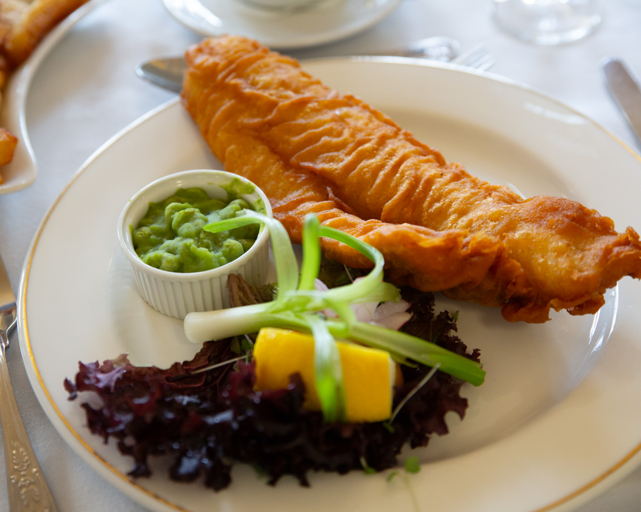 Lisa and Oliver wandered from table to table, greeting guests properly, pausing for conversations and laughter before the main meal arrived. When it did, it couldn’t have felt more fitting — fish and chips served with lemon wedges, salad, and, of course, mushy peas. Familiar, comforting, and exactly right.