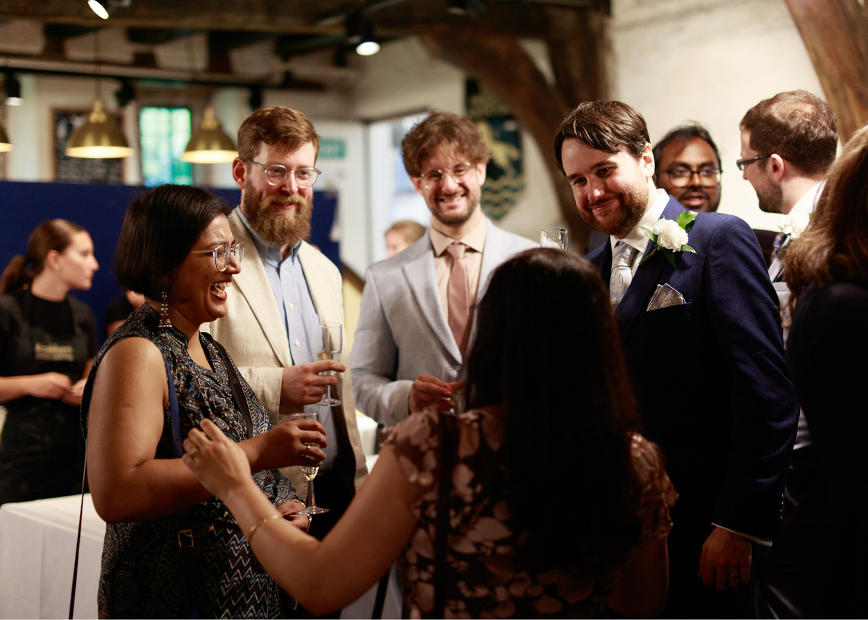 As the register was signed, the pace softened again. The signing table became a place not just for formality, but for laughter and connection. Friends and family gathered naturally, forming small, informal groups full of warmth and affection.