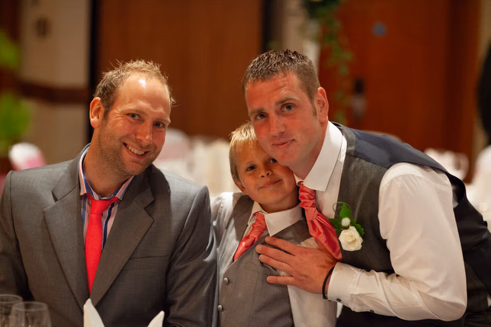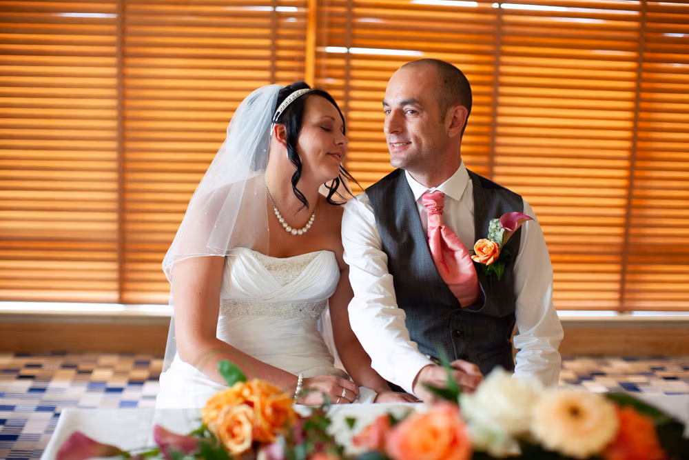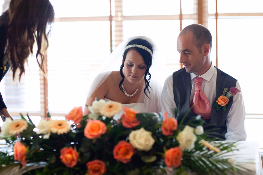 With the blinds half open, a soft, misty light filled the room as Gemma and Dave signed the register. Family and friends leaned in close, smiling, snapping photos, and soaking up the happiness of the moment. Their children joined them too, making the family portraits at this stage extra special — full of hugs, laughter, and pride.