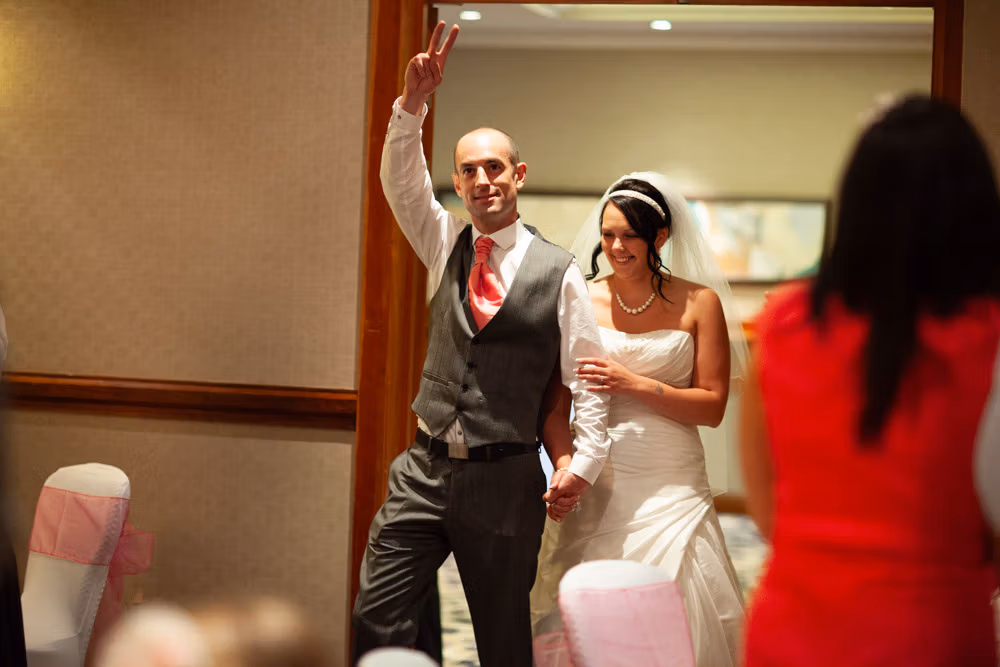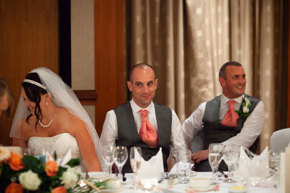 Gemma & Dave’s entrance was full of celebration, greeted with clapping and cheers before the speeches began. The father of the bride raised the first toast, followed by heartfelt words from Dave and plenty of fun from the best man.