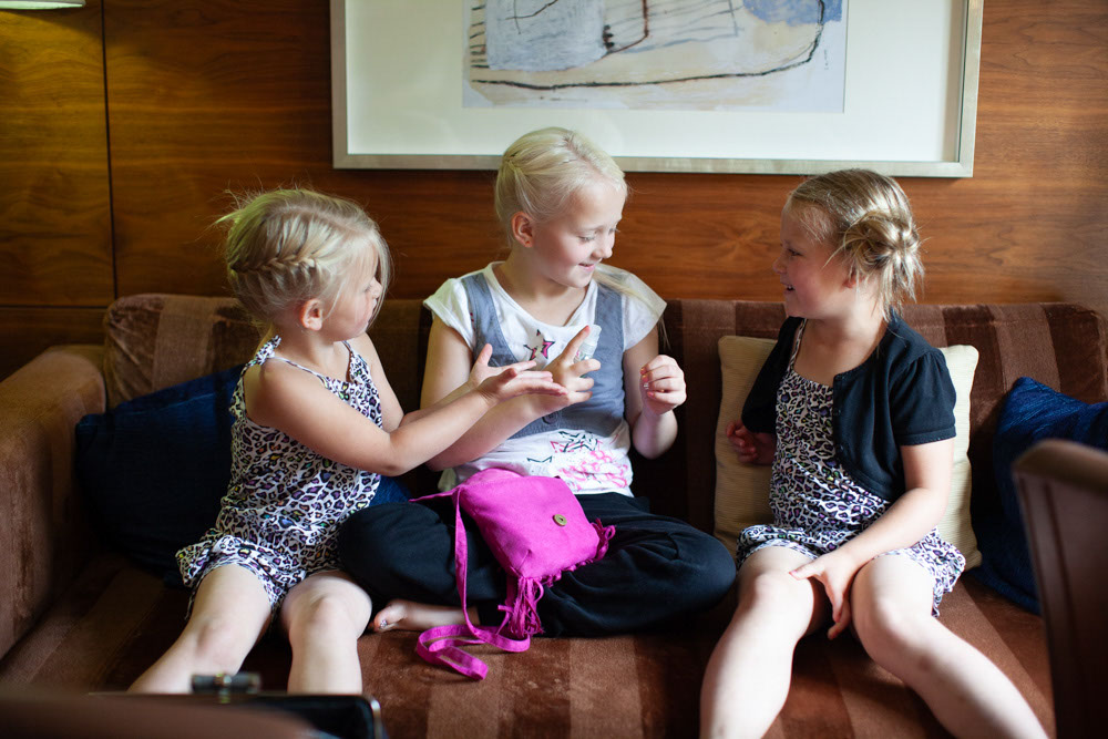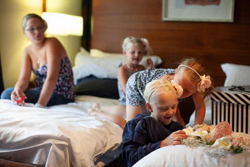 The morning began with a mix of calm and chaos, just as wedding mornings often do. In one corner, bridesmaids carefully laid out dresses, rings, and little details ready for the day. In another, the room was alive with chatter, laughter, and the happy bustle of children.