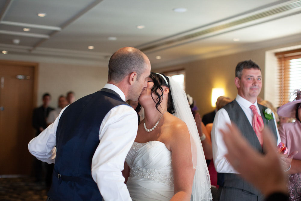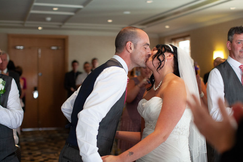Once the register was signed, everyone flowed into the adjoining room — a space alive with chatter, smiles, and that first wave of post-ceremony relief. I caught Gemma and Dave sharing a quiet kiss in the middle of it all, a little pause just for them.