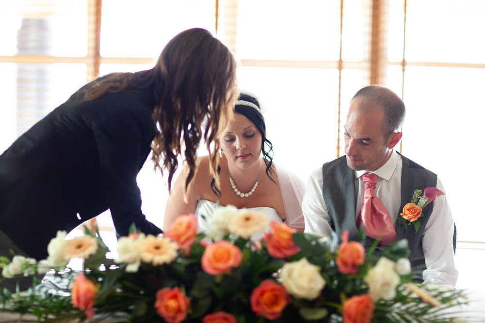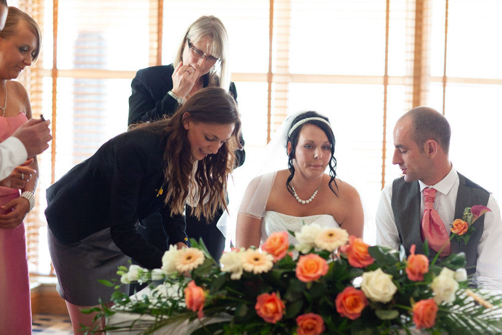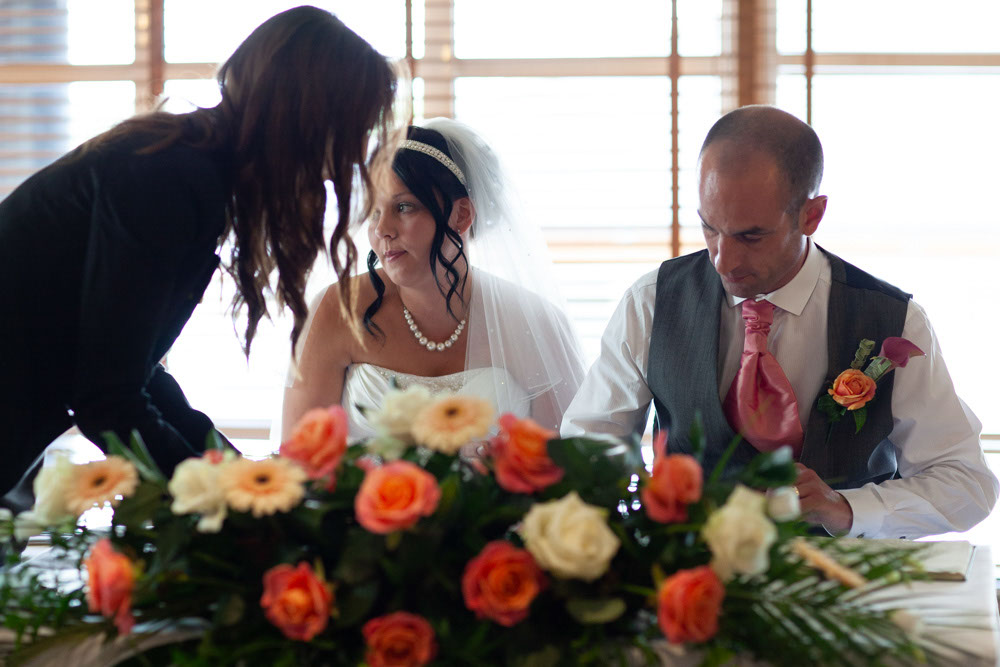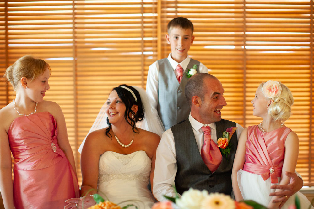With the blinds half open, a soft, misty light filled the room as Gemma and Dave signed the register. Family and friends leaned in close, smiling, snapping photos, and soaking up the happiness of the moment. Their children joined them too, making the family portraits at this stage extra special — full of hugs, laughter, and pride.