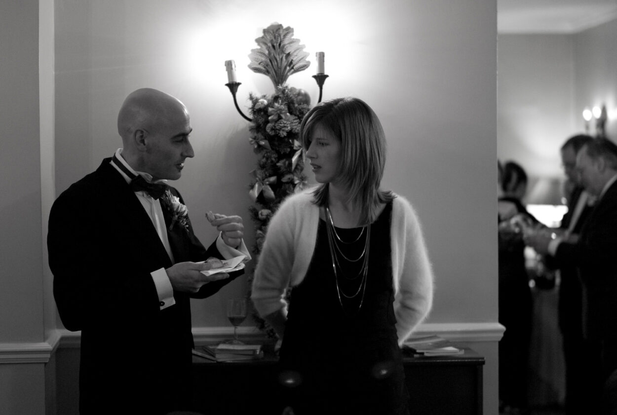 A quiet exchange before the aisle.