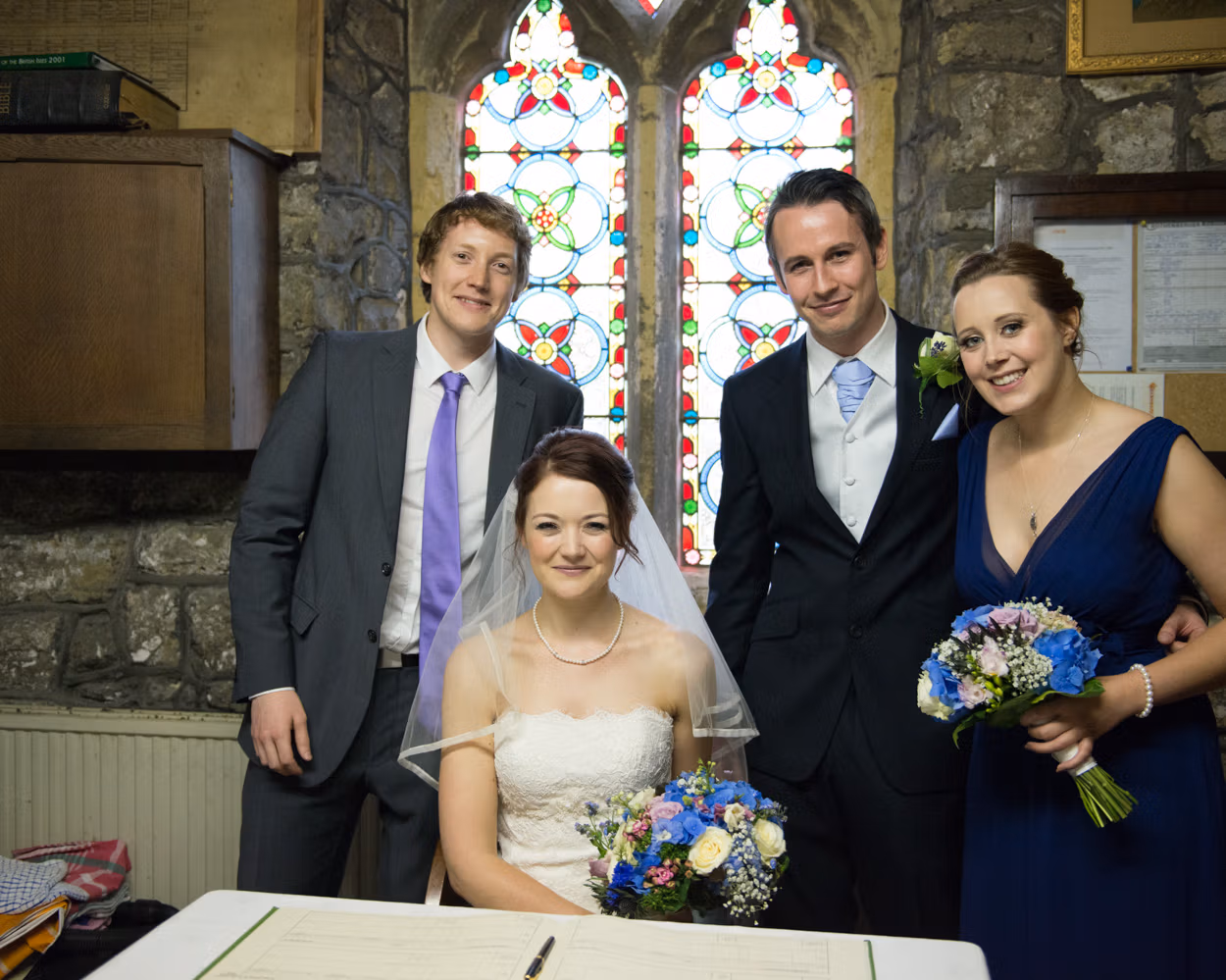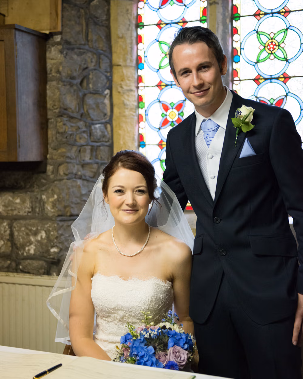 Inside, the ceremony unfolded with a gentle ease. Paul turned as Tanya arrived with her mum, smiles carried through the aisle and into the vows that followed. Hands met, rings were exchanged, and a quiet warmth settled across the room.