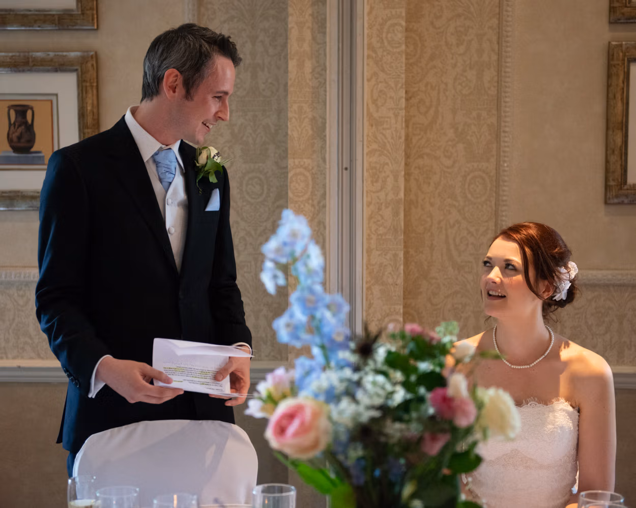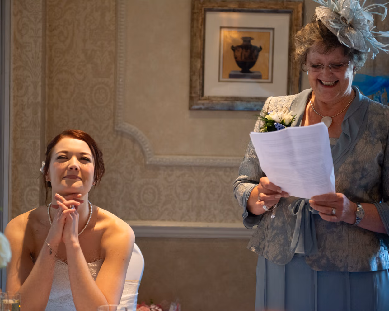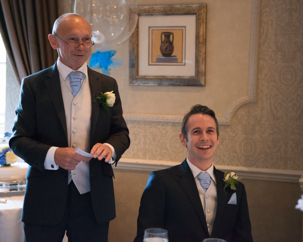 Glasses were raised as speeches began — Tanya’s mum, Paul’s dad, then Paul himself, followed by the best man. Laughter moved easily between moments of pride and quiet emotion, a few glances exchanged, the room lifting and settling again as each voice carried through.