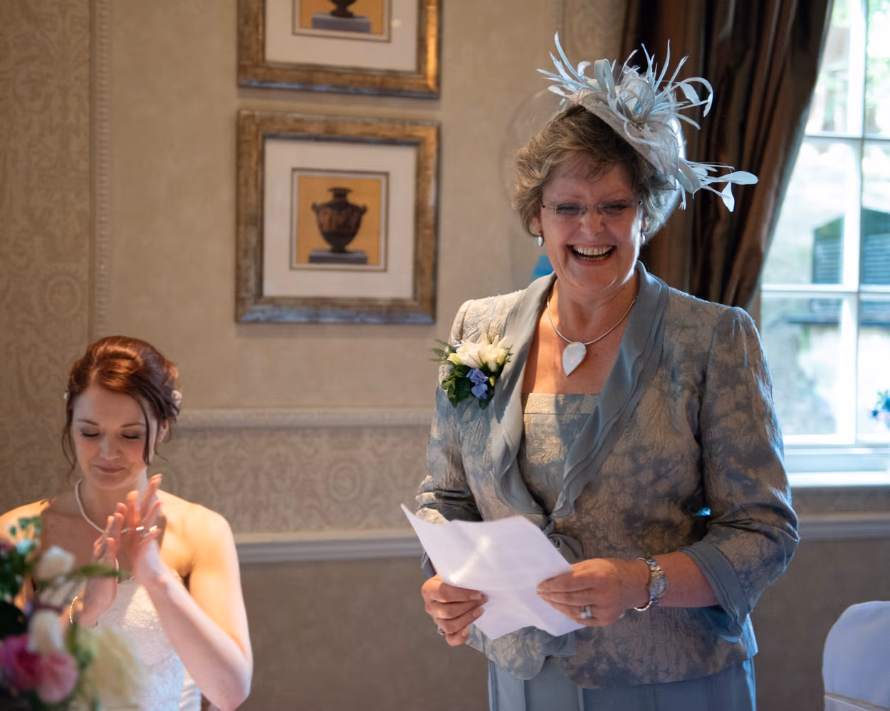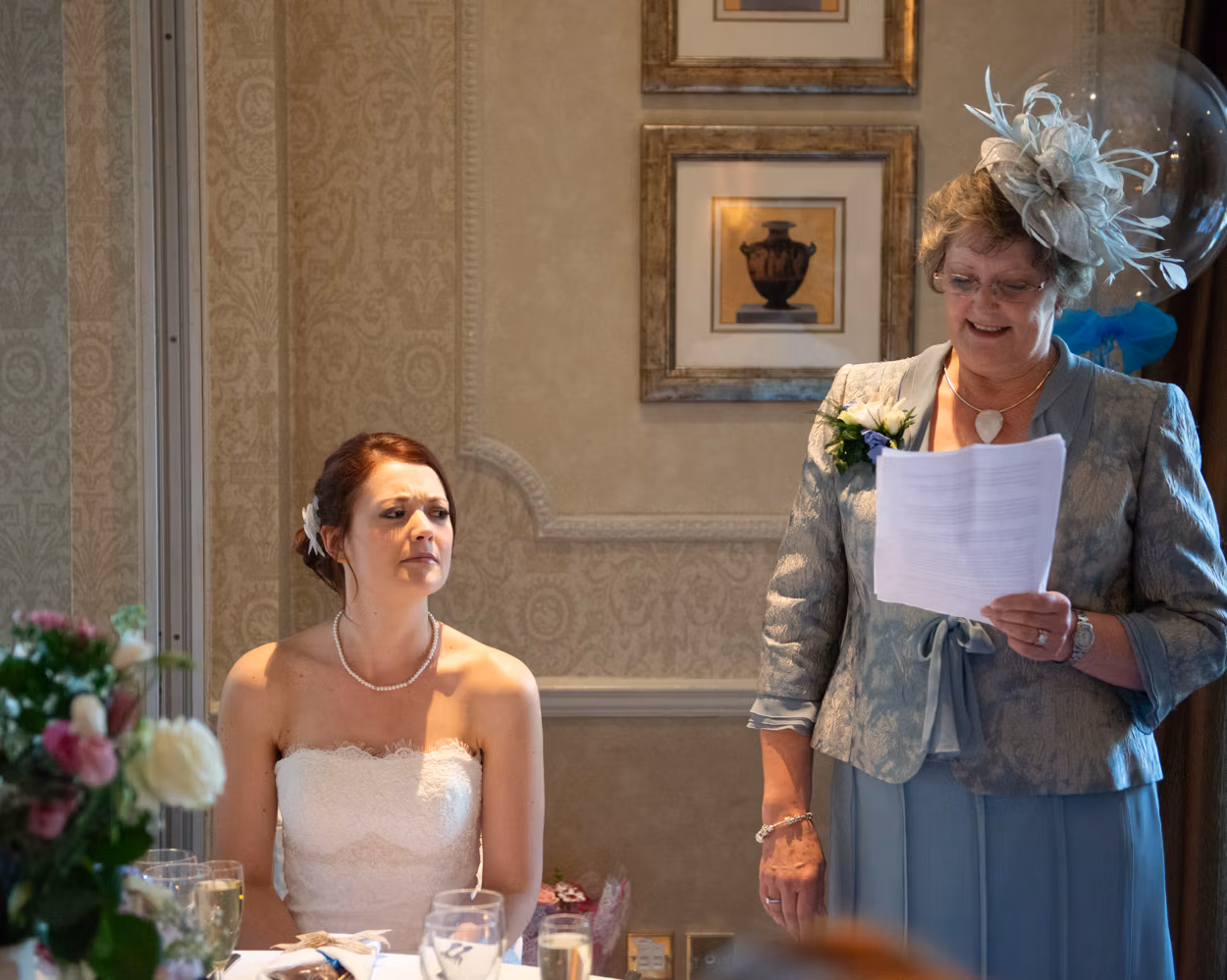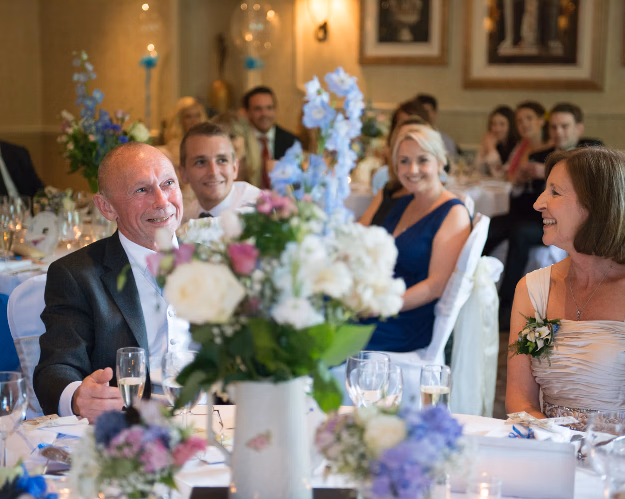 Glasses were raised as speeches began — Tanya’s mum, Paul’s dad, then Paul himself, followed by the best man. Laughter moved easily between moments of pride and quiet emotion, a few glances exchanged, the room lifting and settling again as each voice carried through.