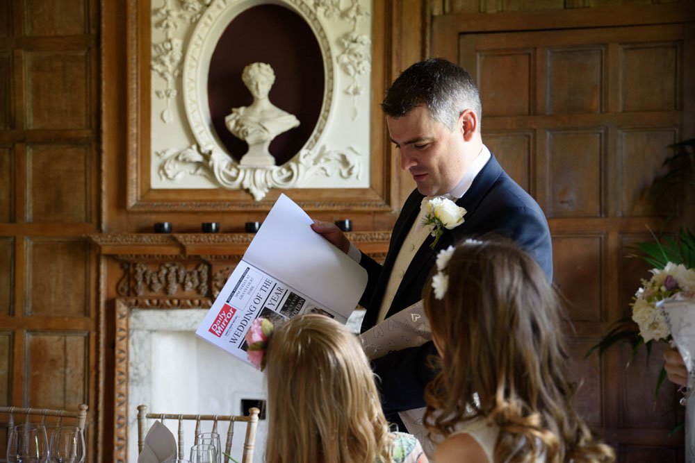 The wedding breakfast brought everyone together in a space full of character, where speeches, laughter, and connection carried the story forward into the evening light.