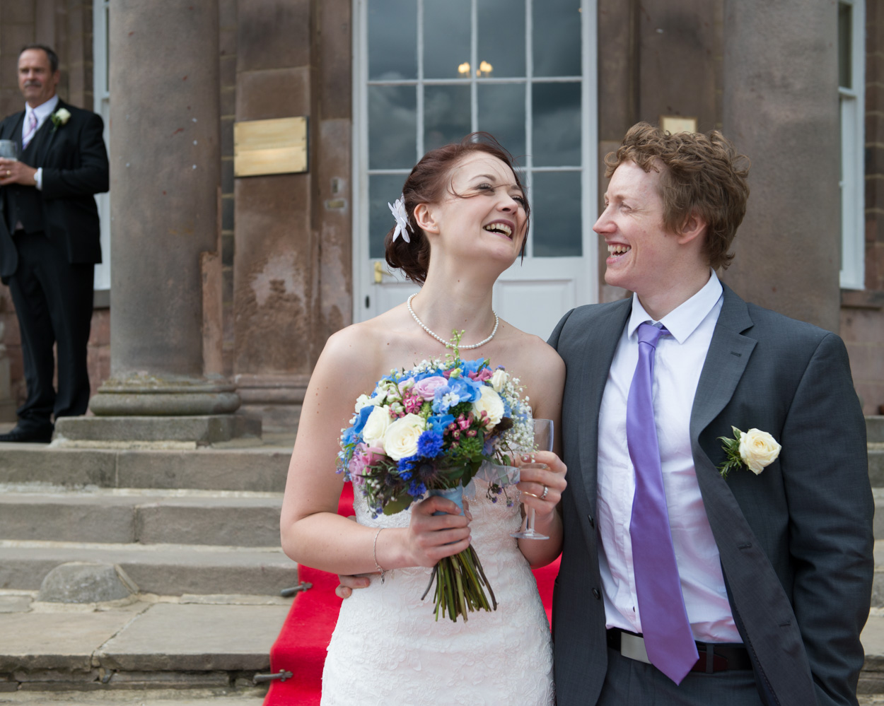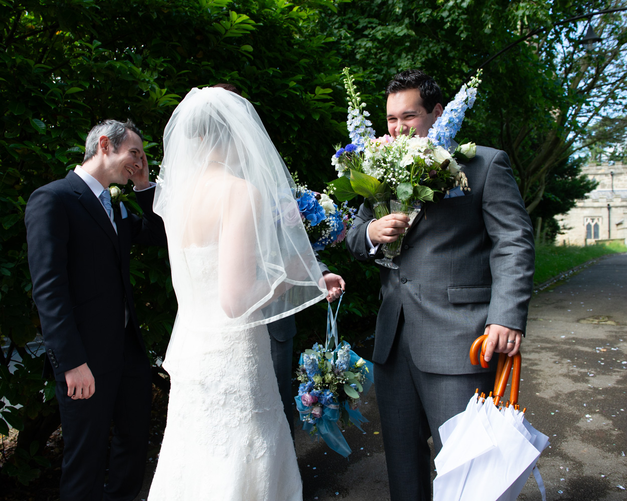 The ceremony at Kirk Deighton Church set the tone early on. Sunshine appearing just as it was needed, then easing away again as the day moved on. By the time everyone arrived at Wood Hall, the pace had settled. Wood Hall, set above the surrounding countryside near Wetherby, holds a sense of space that quietly shapes the day around it.